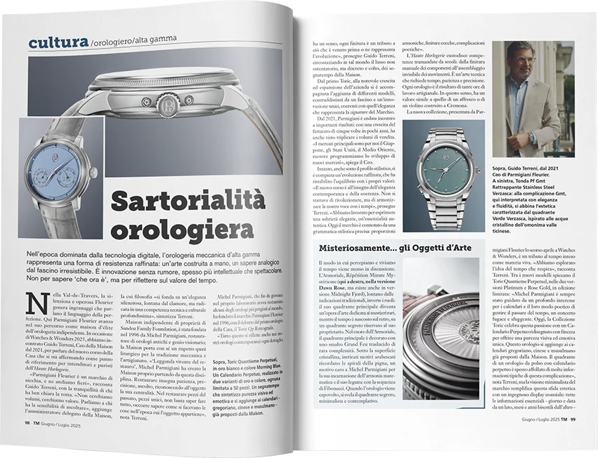 Non solo approfondimento economico, e finanziario, ma anche Arte e Cultura animano le pagine di Ticino Management. Interviste a curatori di grandi mostre, o a esperti che le hanno rese possibili. Un posto d’onore è riservato all’Alta Orologieria, l’essenza dell’artigianalità svizzera, con le grandi Maison che si alternano in ogni edizione.