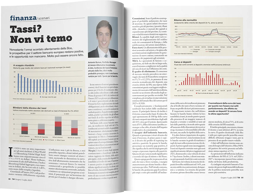 Vi confluiscono interviste, analisi e collaborazioni con importanti player del mondo bancario e finanziario, istituzionali e indipendenti. Qui grandi Gruppi e piccole boutique si presentano, e raccontano le loro storie, e le formule del loro successo. Locale, nazionale e internazionale si intrecciano.