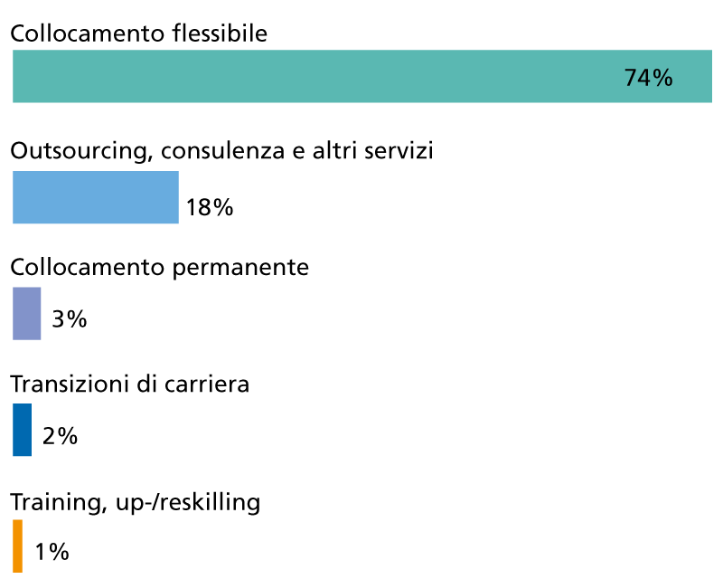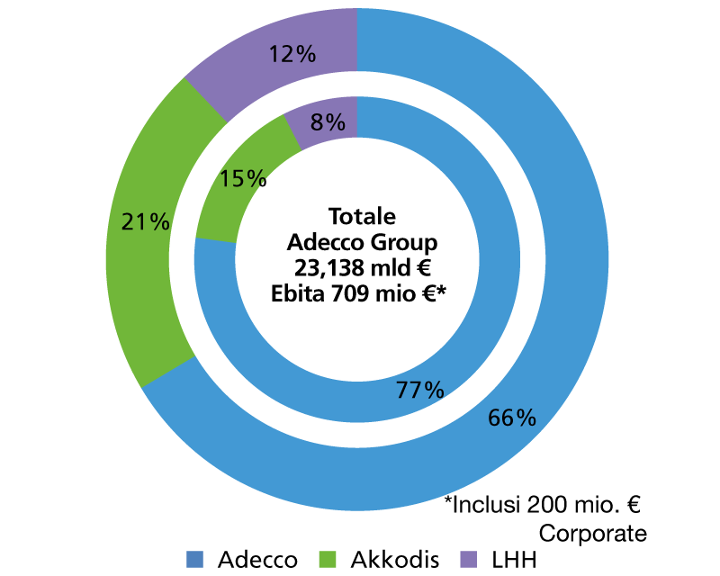 Sostanziale l’equilibrio fra clientela aziendale e privata: la prima acquirente delle soluzioni offerte, la seconda che alimenta il bacino di candidati. Reclutamento di personale temporaneo, collocamento permanente, outsourcing e soluzioni Hr sono le principali linee di servizio di Adecco. «Il nostro modello di ricavo è volutamente multistream. Come consuetudine nel settore, guadagniamo margini sui collocamenti orari per lavori temporanei, mentre in genere per il reclutamento permanente applichiamo commissioni di collocamento. Per le soluzioni di outsourcing come il Recruitment Process Outsourcing (Rpo) e il Managed Service Provider (Msp) si lavora invece su contratti/anticipi e commissioni di progetto. Infine, per la formazione, la transizione di carriera e i servizi di consulenza, adottiamo un mix di tariffe a progetto, abbonamenti e prezzi legati ai risultati», spiega Marcel Keller.